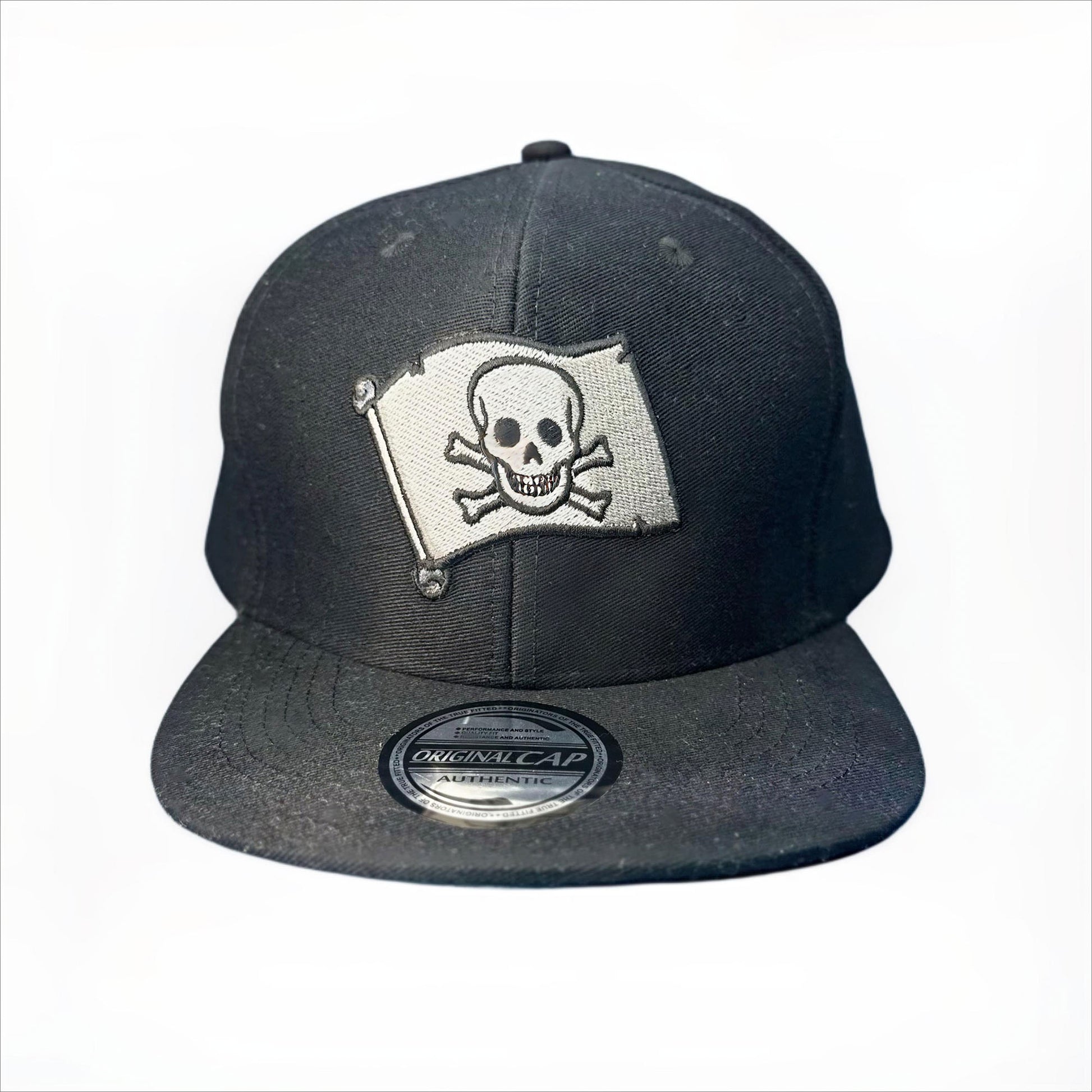 Boné de aba reta de 6 gomos com regulador de arreata com fecho e esconderijo em tecido sarja 100% algodão. Bordado alto.